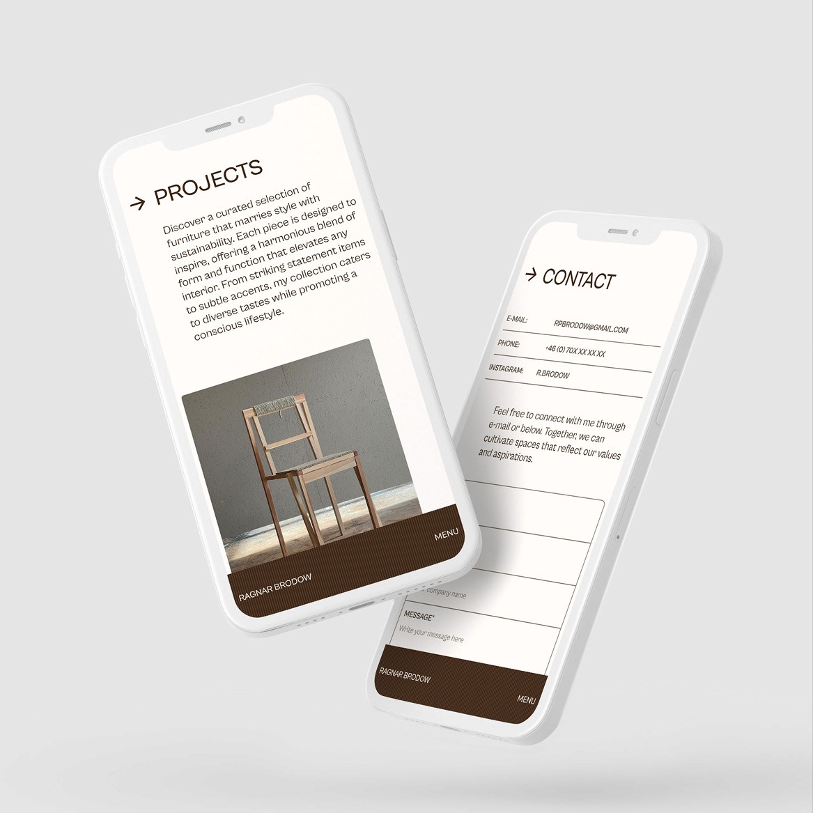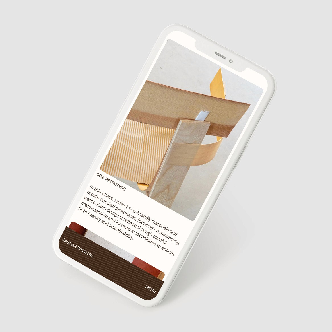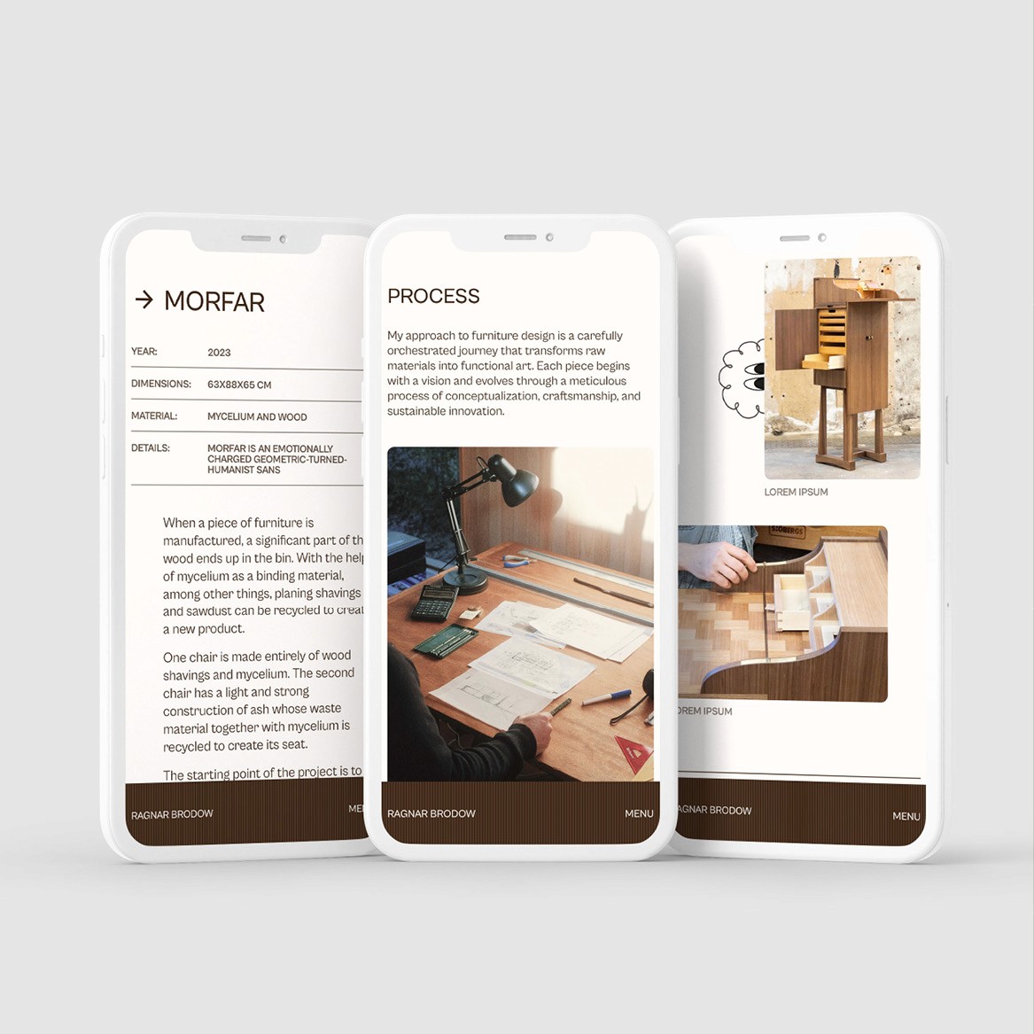 Ragnar Brodow är en svensk möbeldesigner med ett skarpt öga för detaljer och djup förståelse för material och konstruktion. Studio Lepost tog fram ett grafiskt uttryck och hemsida till Ragnar som linjerar med hantverket i hans praktik.